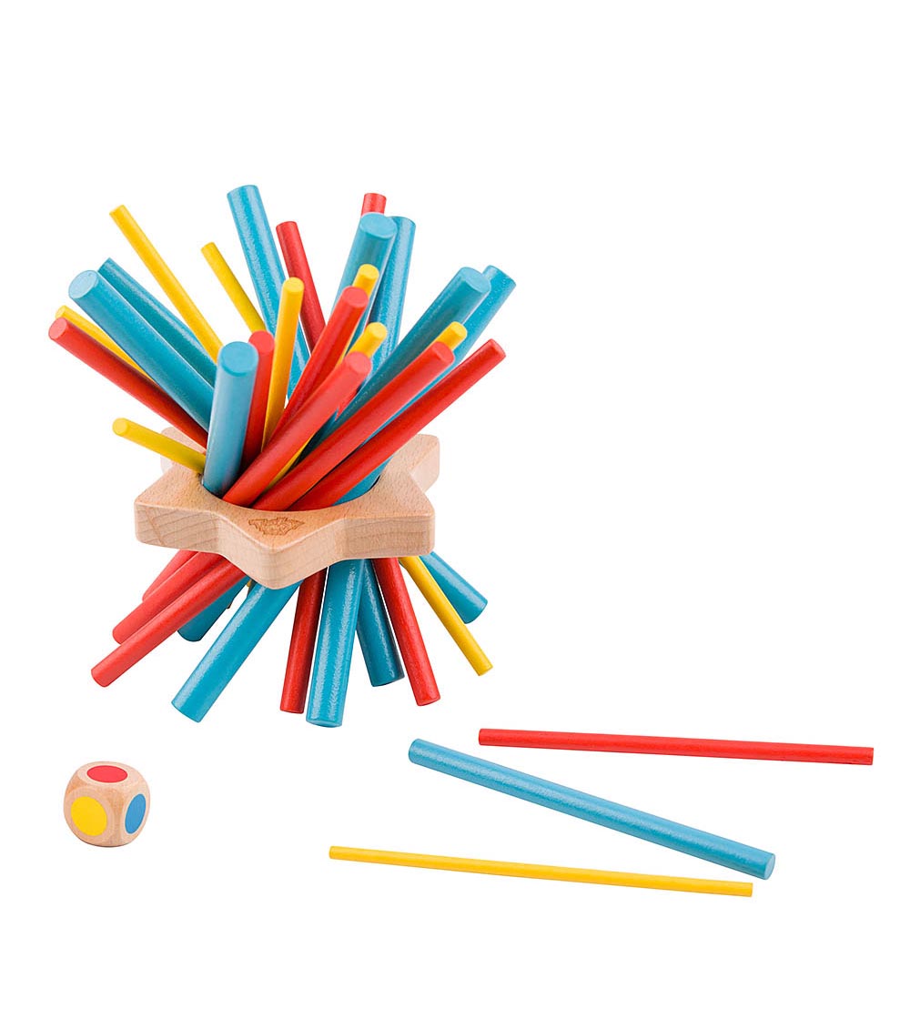 Това разбира се е играта Микадо. За да е още по-интересна от позната ни вече такава, Tooky Toys ни я предлагат в комплект с пръстен и зарче.