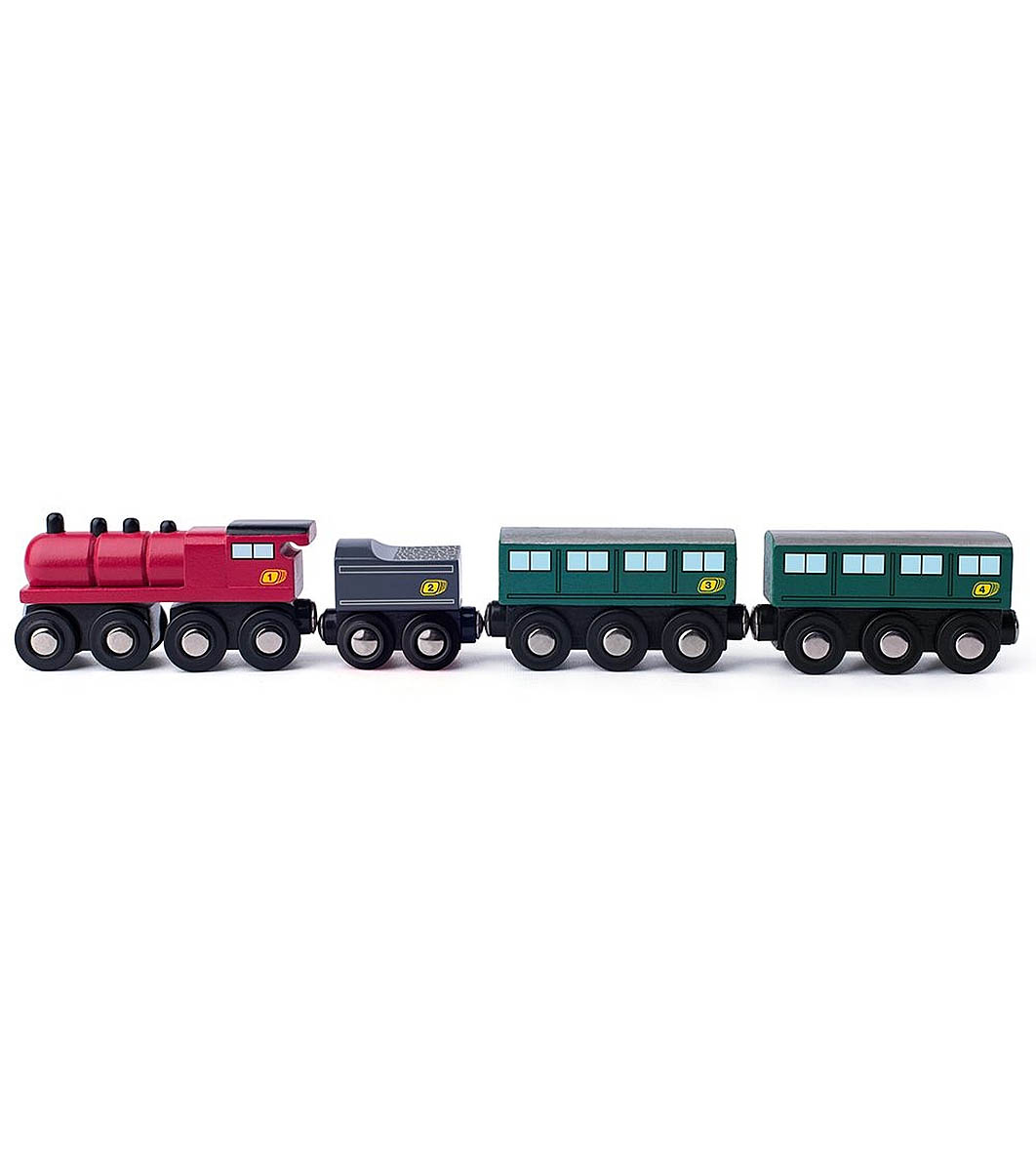 Дървено влакче, съвместимо с всички комплекти и релси на марките Woody, Lelin, Brio, Hape, Bigjigs и влакчетата на Ikea.