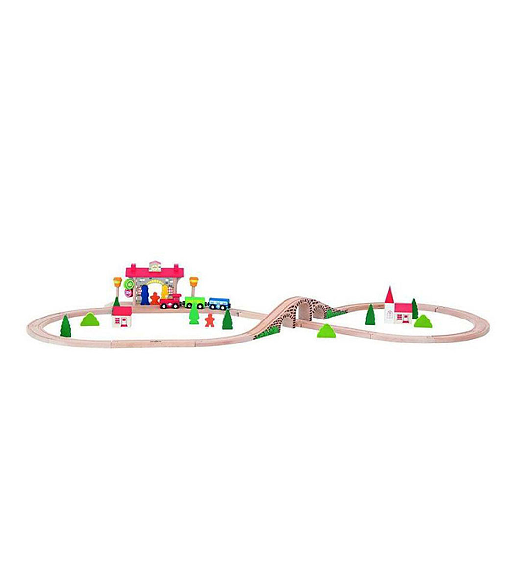 Комплект от дървен влак с релсов път