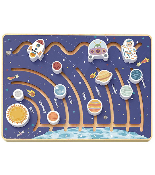 Подарете на вашето дете вълнуващо космическо приключение с дървения лабиринт „Космос“ на Tooky Toy – забавна и образователна играчка, създадена специално за най-малките любопитковци!