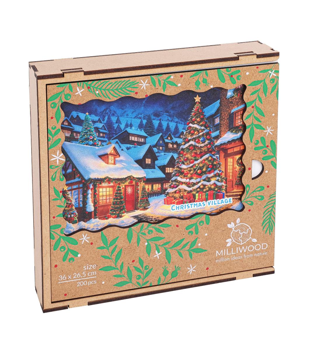 В този пъзел ще намерите всичко, което искате в атмосферата на празниците – в средата има висока, красиво украсена коледна елха, която излъчва блясък и чар. Къщите около нея са изпълнени с топла светлина, която, отразена в снега, създава впечатлението, че целият град е пълен с живот и магията на Коледа.