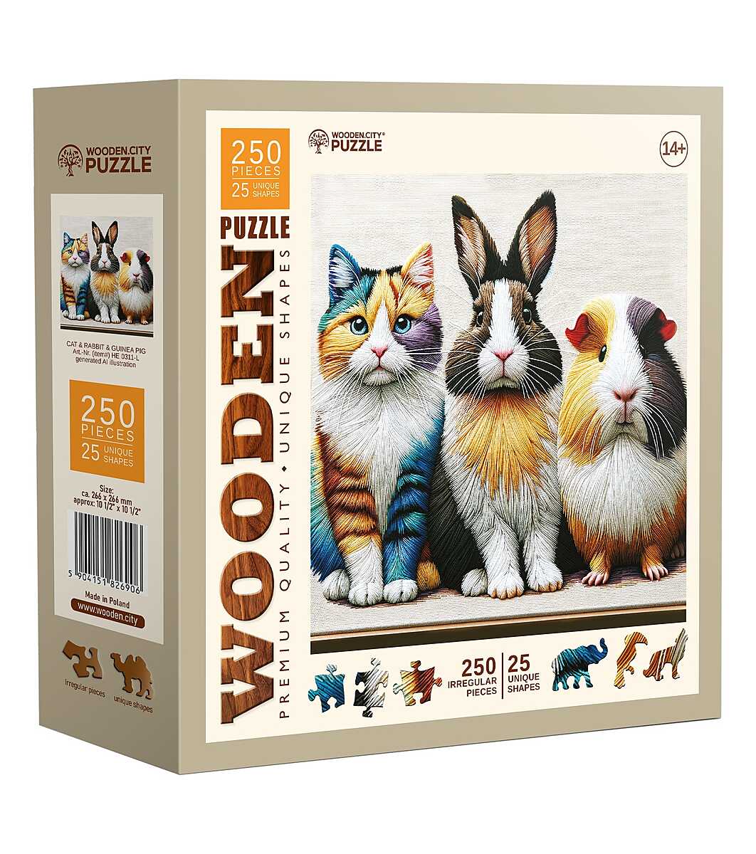Красив дървен пъзел с нестандартни части и 25 специални части с формата на животни.