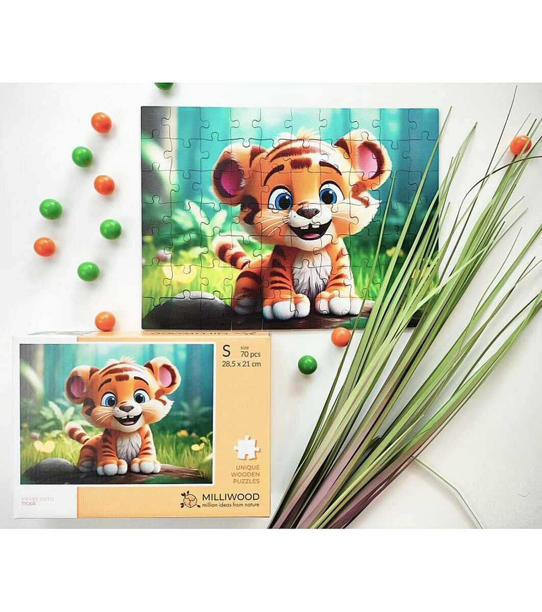 Красив дървен пъзел със 70 стандартни части в картонена кутия. Серията Yuppie Cutie ще срещне децата с сладки животинки, чиито любопитни очички приканват към приключения.