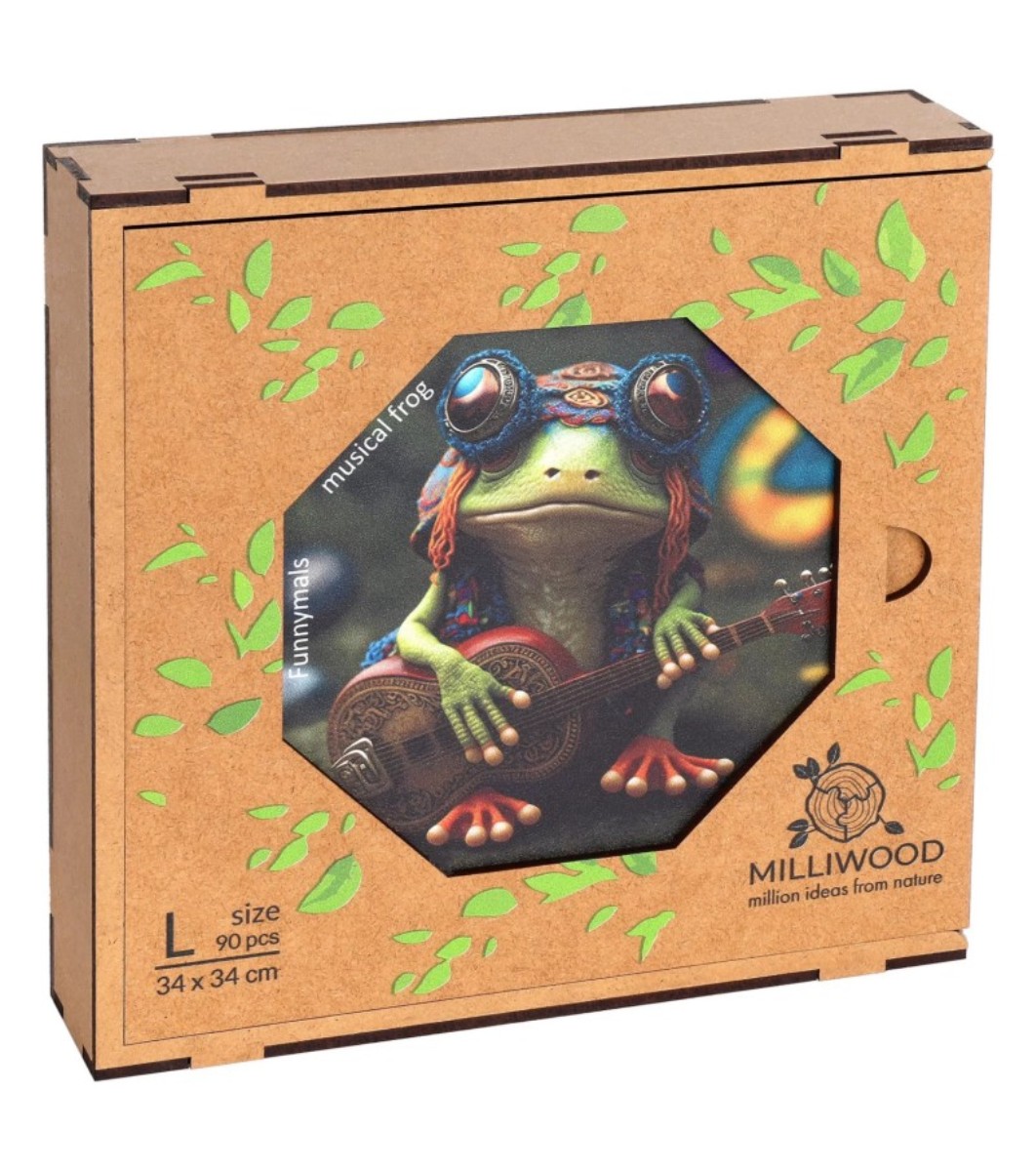 На картинката има жаба, която е майстор в свиренето на жабешка китара. Тя използва гъвкавите си крайници, за да свири по начин, по който никой друг не може. Нейната изключителна струнна техника кара солото й да звучи като жабешки звуци от друго измерение.