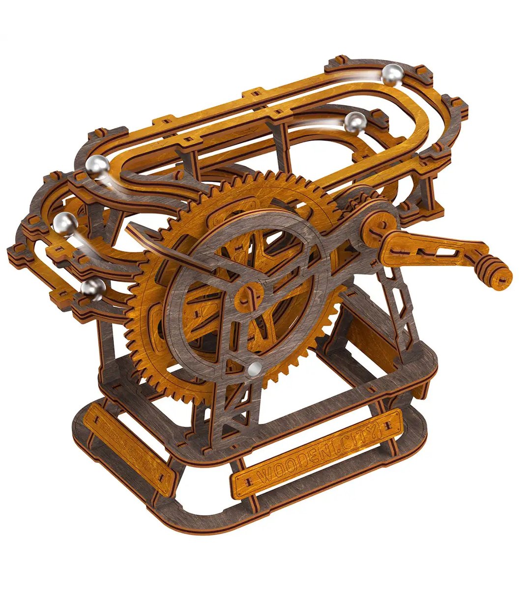 Механичен 3D модел за сглобяване, от дърво, със средно ниво на сложност (3 от 5).