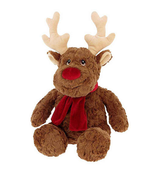 Зарадвайте Вашия малчуган или скъп приятел, съхранил детското в себе си, с този усмихнат плюшко, с големи рога, червено носле и червено шалче, в унисон с празника.