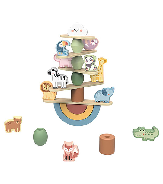 Този цветен комплект включва разнообразие от дървени елементи: блокчета за нанизване, животни, дъски, дъги и пръчици, с които децата могат да създават невероятни кули и балансиращи конструкции. Играта развива фина моторика, координация око-ръка, творческо мислене и пространствено възприятие – докато малчуганите балансират симпатични животни върху нестабилни структури.