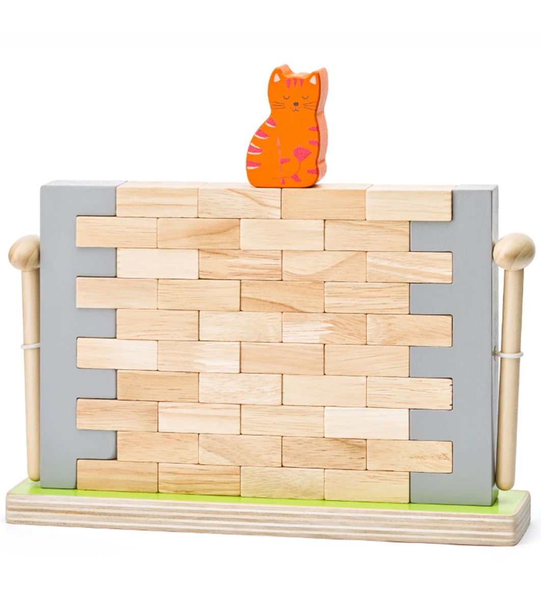 Играчите трябва внимателно да избутват тухличките от стената и да балансират без да съборят сладкото коте, което стои отгоре – идеално занимание за малки ръчички с големи идеи!