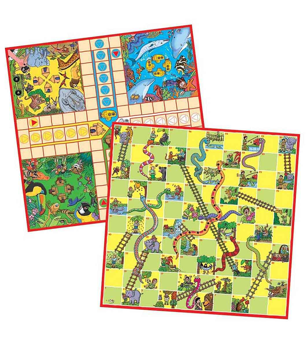 Две забавни класически игри, включващи двустранно игрално поле със забавни картинки с животни, пулчета, зарче, шейкър за зарчето и инструкции.