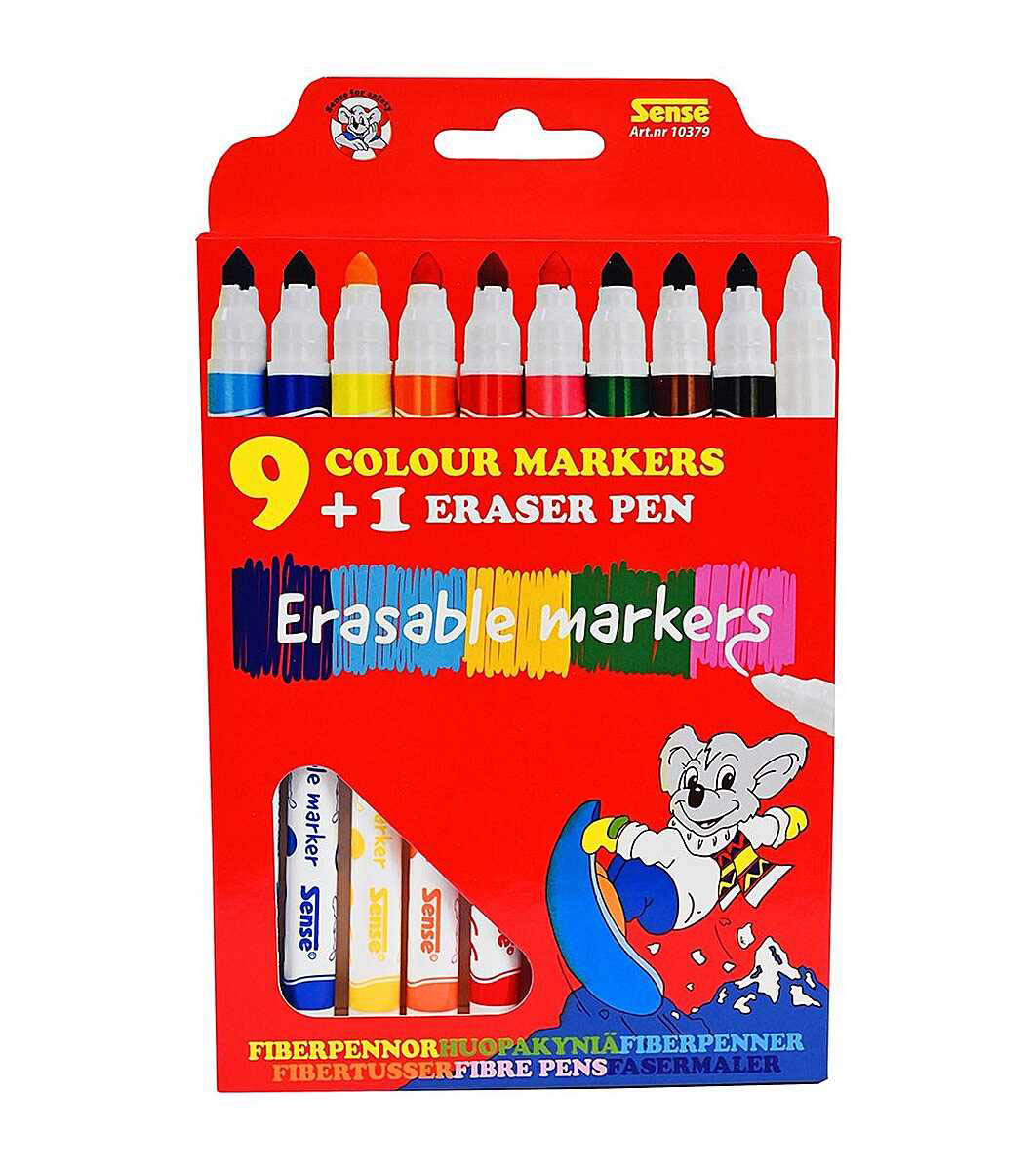 Комплектът включва 9 цветни и 1 изтриващ маркер.