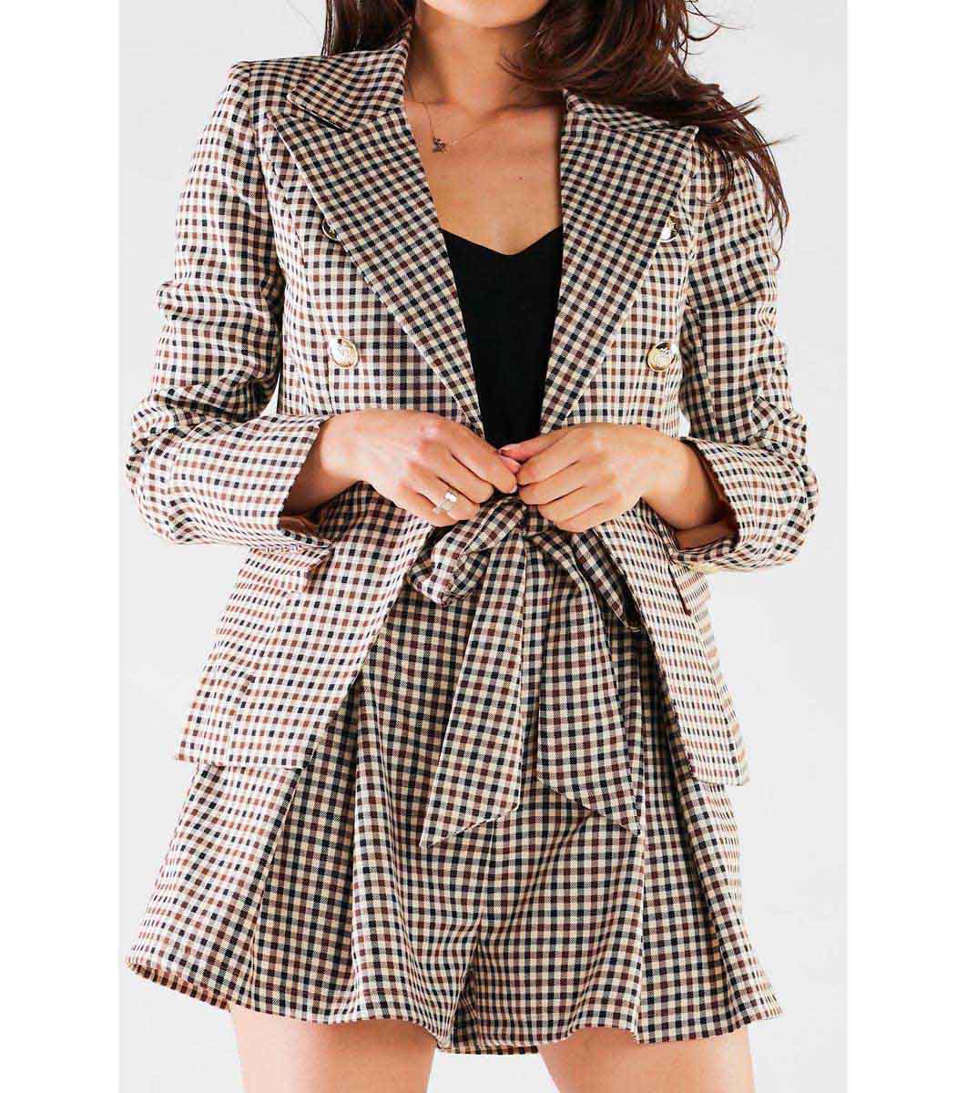 Кафяви памучни дамски къси панталонки на каре Kira