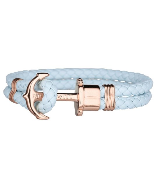 Стилна плетена гривна с декоративна котва като закопчалка. Изработена е с внимание към детайла, което я прави подходяща за различни поводи.