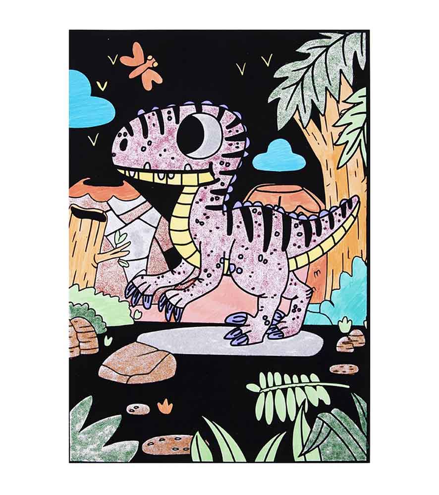 Различното в този комплект за оцветяване е, че фонът е от кадифе. Така малчуганите опознават и изучават различните материали, които в бъдеще могат да използват в своите артистични проекти.