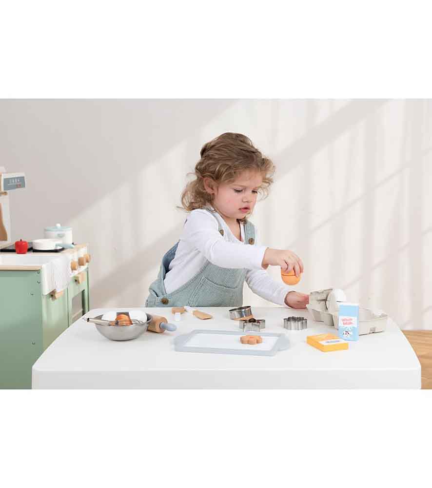 Дали ще забърка ароматен кейк, или ще разточи хрупкави курабийки ще разберете, като го оставите да развихри кулинарните си фантазии. Сетът разполага с всички основни аксесоари и продукти.