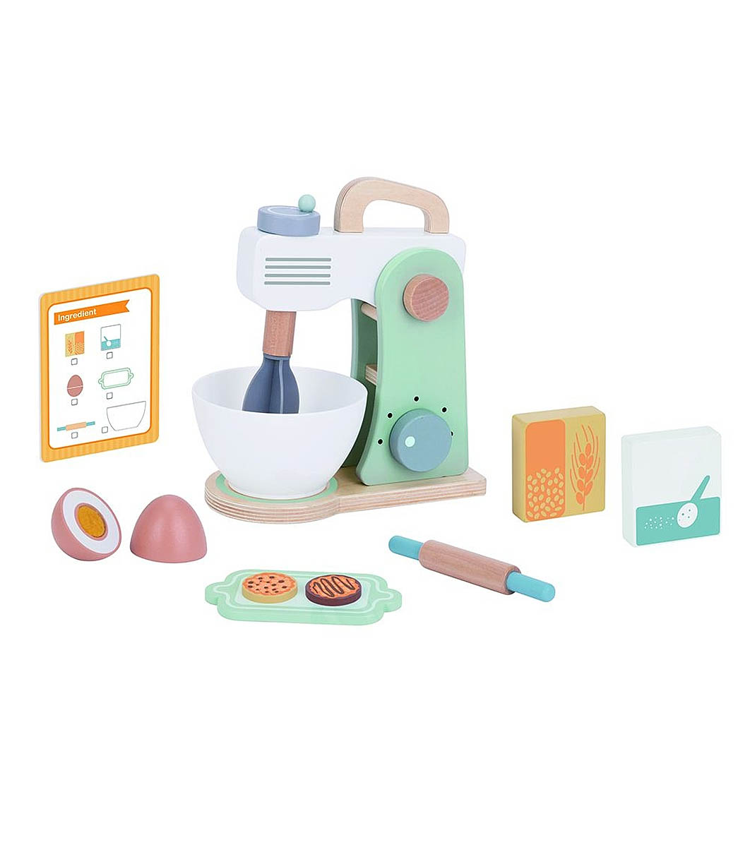 Oчарователният настолен миксер, с дръжка и въртящи се бъркалки, е точно като маминия. Остава да се смесят продуктите в голямата купа и да се задейства кулинарната магия. Брашно, захар, яйце и сместа е готова. Следва разточването с великолепната точилка. Има и рецепта. Но импровизациите са задължителни.