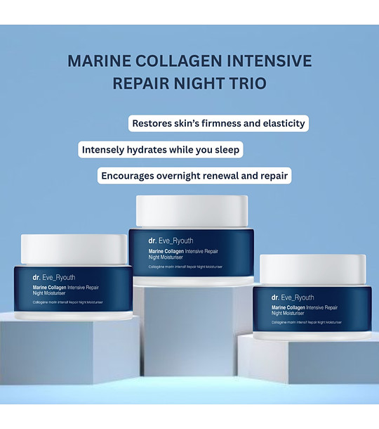 • Нощен възстановяващ хидратиращ крем с морски колаген, пептиди и подхранващи масла за възстановяване на стегнатостта, хидратацията и гладкостта на кожата.