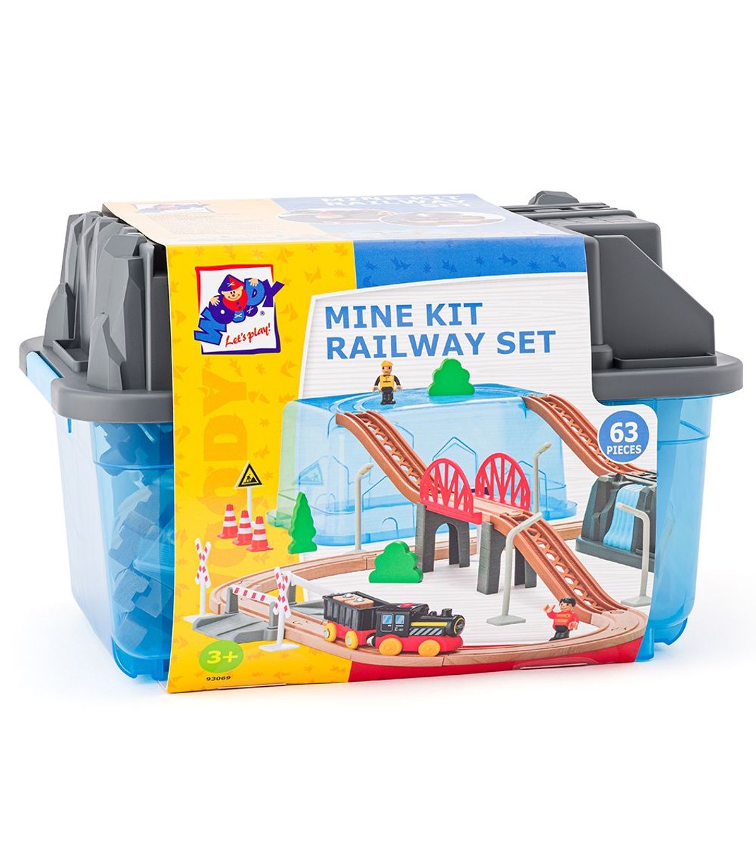 Това е страхотен комплект, който ще зарадва децата ви. Влакче и дървени релси, с които ще могат да играят и да се забавляват. Влакът ще може да се катери и спуска по релсите, за да стигне до мястото за товарене и разтоварване.