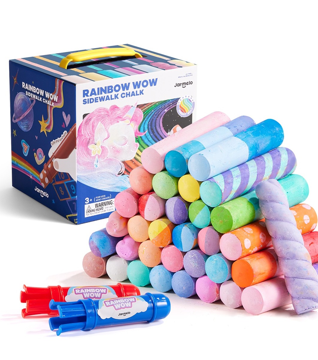 Този комплект е идеалният избор за малките художници, които обичат да изразяват въображението си върху дъска, тротоар или картон. Комплектът съдържа 36 ярки и наситени тебешира в различни цветове и два удобни държача, в които да се поставят и да предпазват ръцете от изцапване и осигуряват стабилен захват.