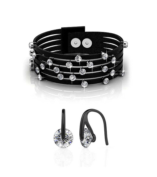 Широка гривна от еко кожа с кристали Swarovski