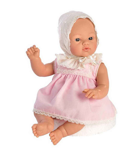 Можете да вземете Коке навсякъде с Вас. Куклата има сладка розова рокличка без ръкави с дантели. Дрехите се закопчават с велкро, което ще улесни детето да сваля и слага тоалета, а играта с обличане ще стане още по -интересна. Комплектът за кукли се допълва от бяла дантелена шапчица, завързана под брадичката с връзка.