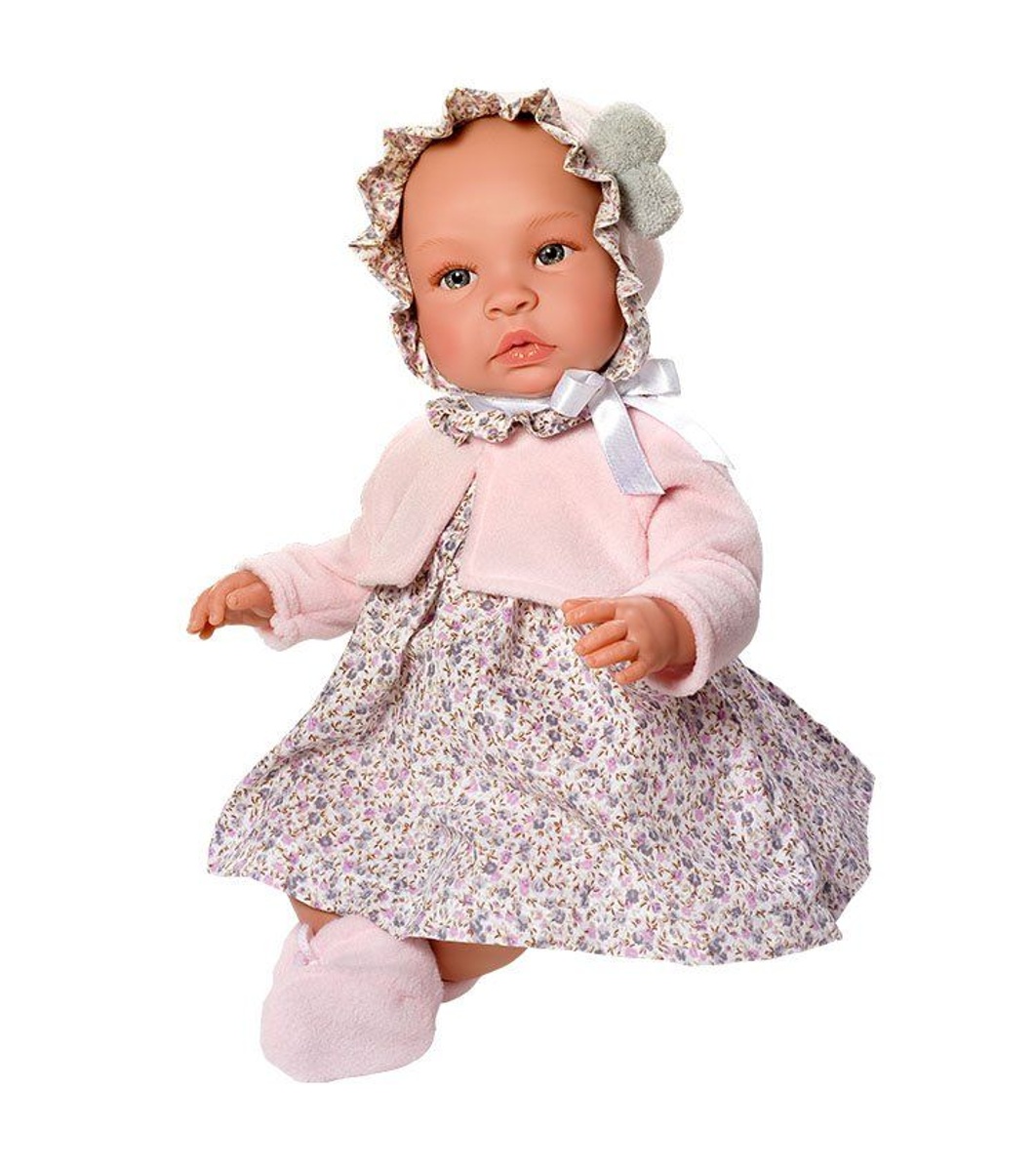 1-2 години, 2-3 години, 3-5 години, 5-7 години Това красиво и изразително бебе на компанията Asivil е ръчно изработено, то е с височина 46 сантиметра и тежи приблизително 0.85 кг. Има винилови крайници и меко тяло.Ръцете и краката на куклата са изцяло изработени от висококачествен винил, изключително приятен на допир. Въпреки че тялото й е направено от плат, ръцете и краката му могат да се въртят.Куклата Лея има сини очи, тя е облечена с прекрасна рокля с флорални мотиви, носи розова жилетка, терличи и шапка с два помпона.Предлага се в красива подаръчна кутия. Играта с кукли възпитава у децата добрина и грижовност, както и чувство за отговорност.Играчката е подходяща за деца над 1 година.
