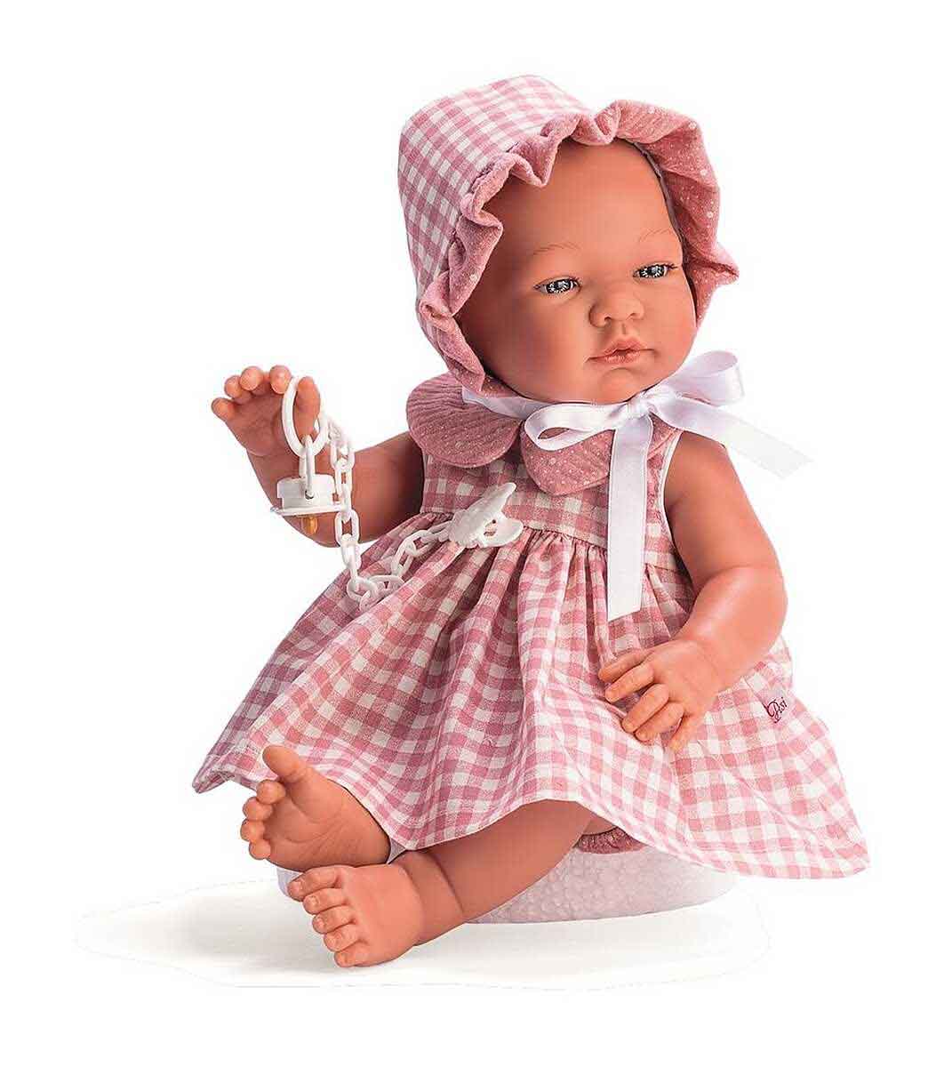 Кукла-бебе Мария, с розова рокля и шапка на квадрати