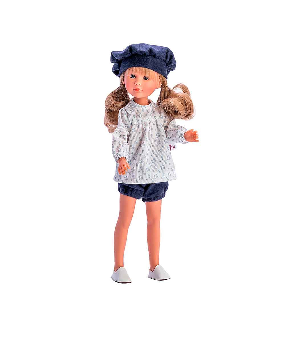 Кукла Силия е облечена в изключително стилен спортен тоалет, с ефектни къси панталонки в син цвят и ластички около бедрата, и елегантна блузка с бухнали ръкави и точици. А синята шапчица и леките бели обувчици завършват елегантното ѝизлъчване.