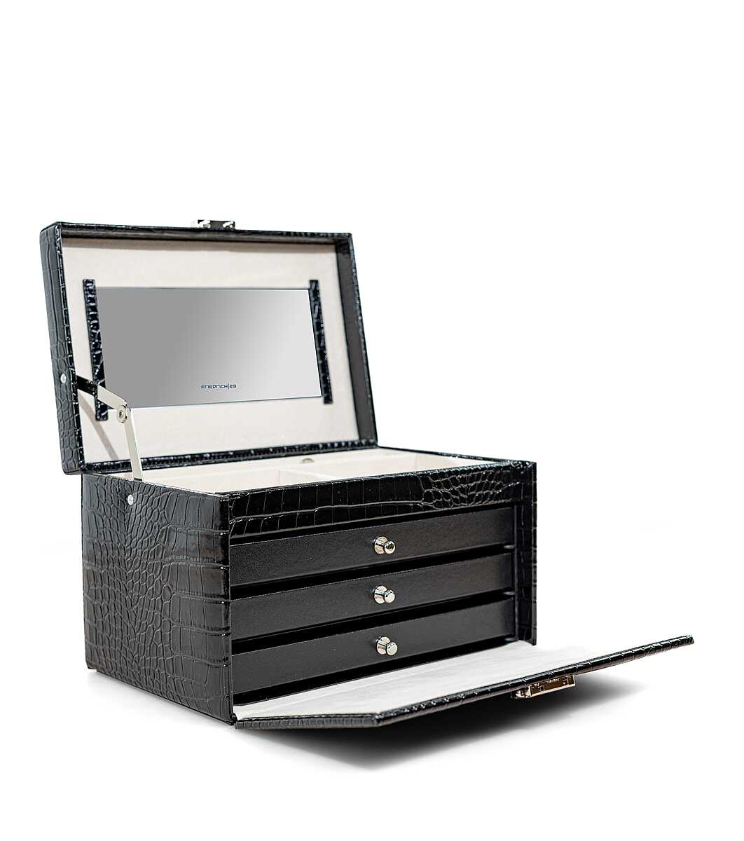 Кутия за бижута на 4 нива в черно с кроко релеф Caiman