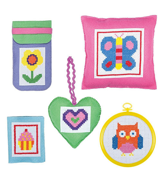 Направи си сама красива възглавничка, гоблен с бухалче, ароматизирано сърце, несесер за моливи с бродирано цвете и тефтерче, където да съхраняваш твоите игли с бродирано кексче.