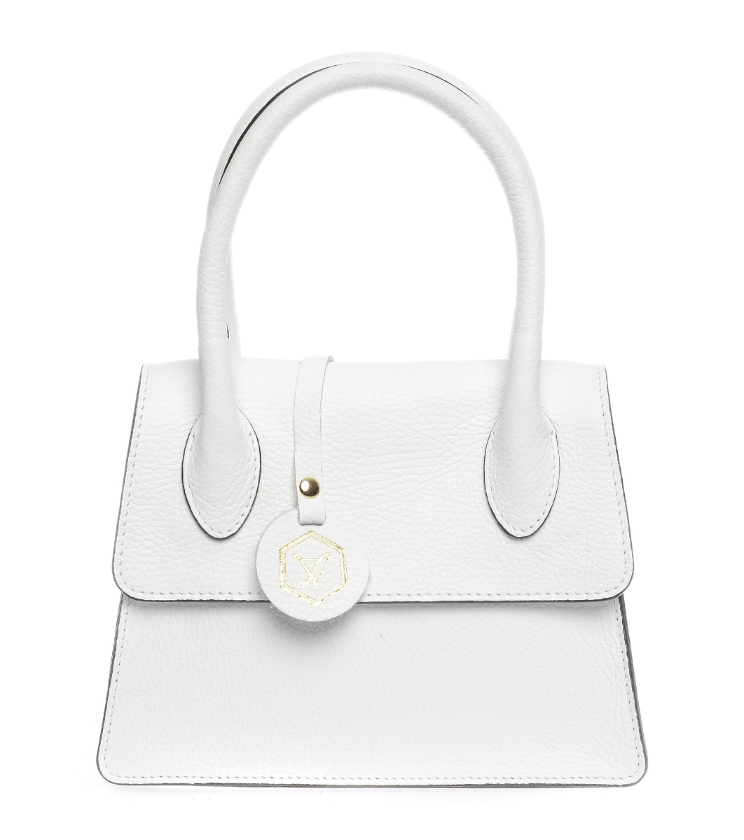 Малка бяла дамска кожена чанта