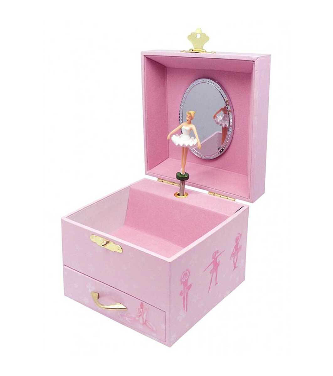 Отворете капака и навийте ключето - ще чуете очарователна мелодия и ще наблюдавате фигурката на балерината как се върти в ритъма на музиката. Кутията разполага с мало чекмедже.