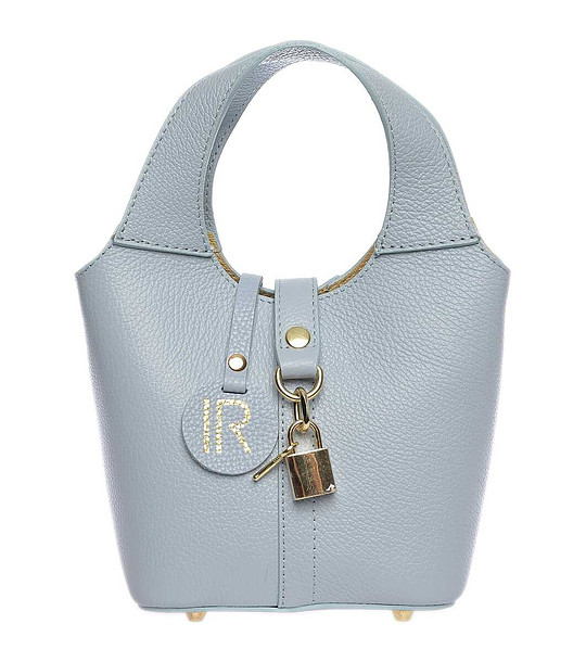 Малка светлосиня дамска кожена чанта