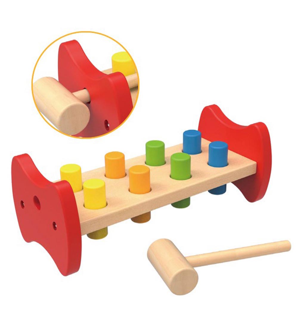 Детето ще чука с чукчето по цветните цилиндри, докато се учи и забавлява.