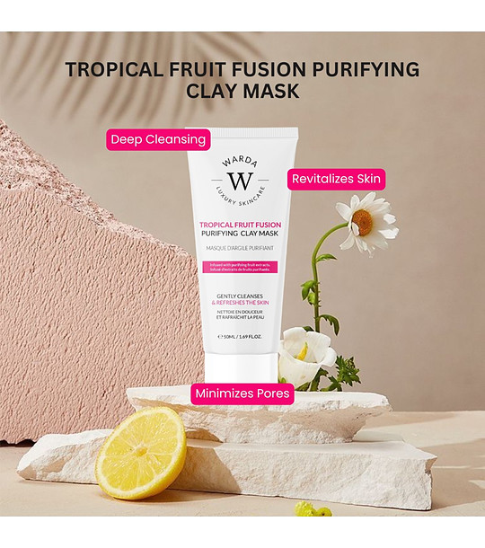 • Тази ревитализираща глинена маска съчетава детоксикираща каолинова и хекторитна глина с жизнена комбинация от екстракти от тропически плодове, включително ягода, малина, къпина, каму каму и нар.