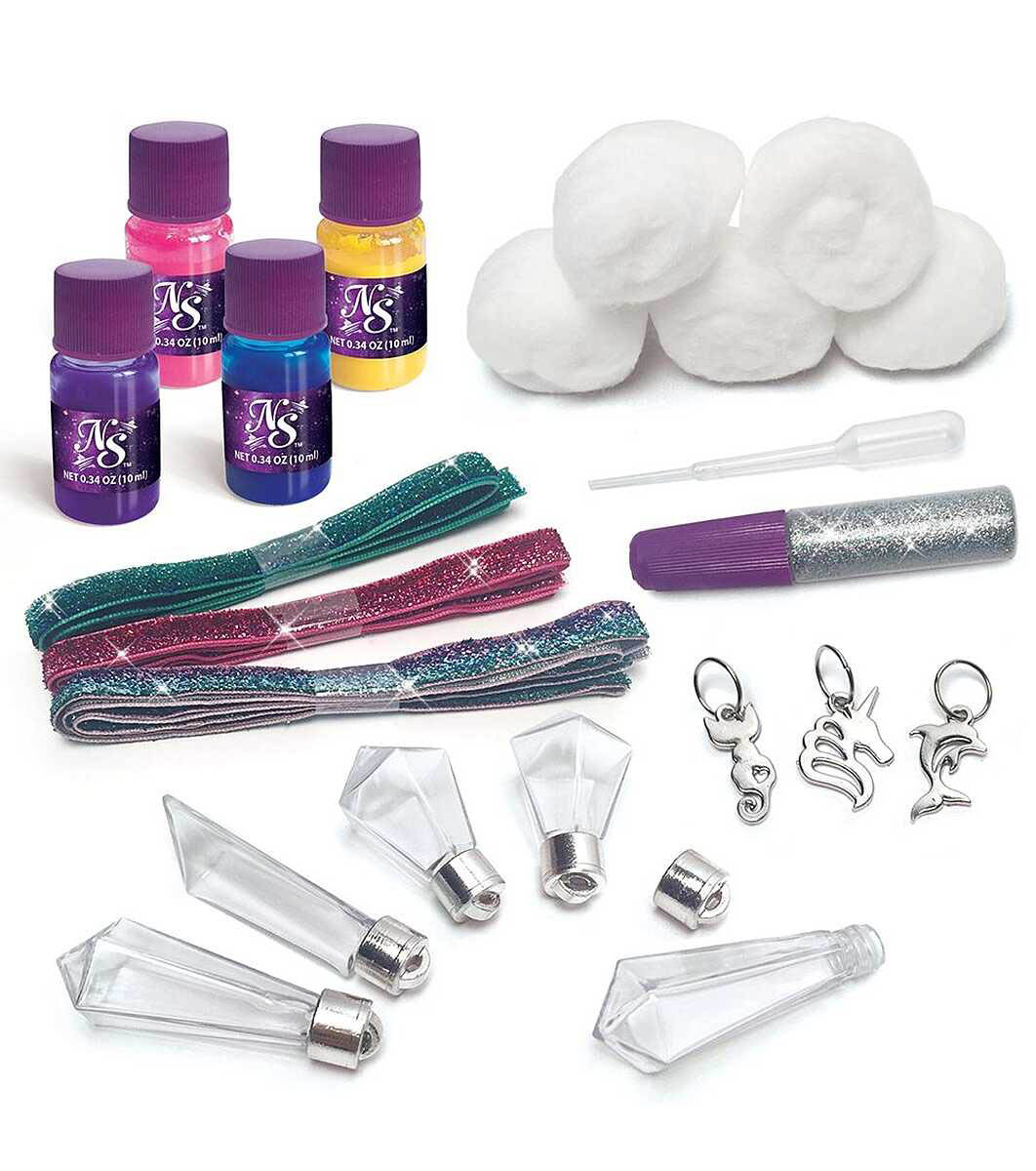 Комплектът съдържа:- 5 шишенца с формата на кристали;- тубичка с блясък на прах;- 4 тубички с мастило;- 3 талисмана под формата на висулки;- искряща панделка;- топчета памук;- пипетка;- инструкции;- разказ за феята Небулия на английски език.