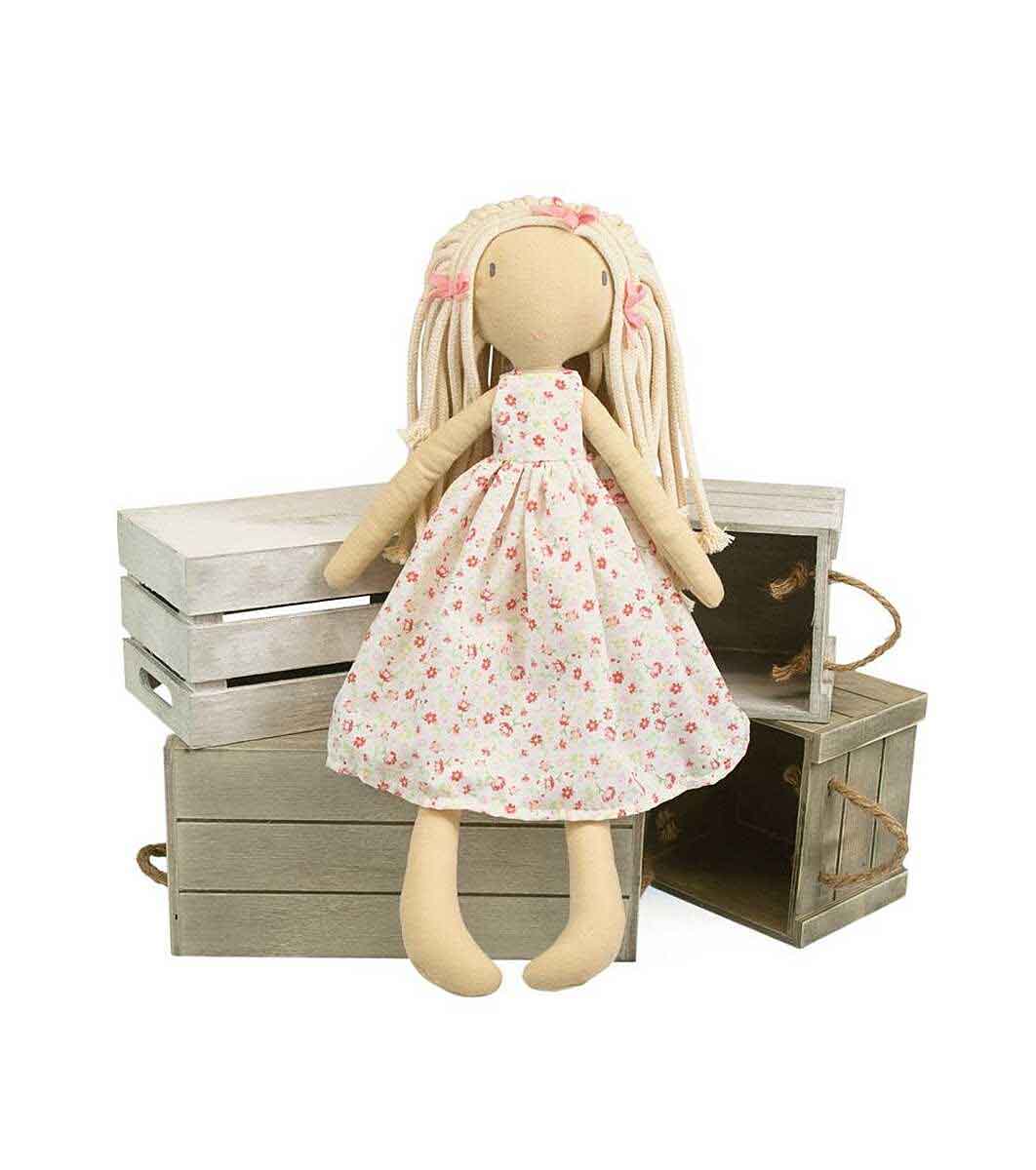 Меката бебешка кукла Келси има бежова, плетена коса, носи рокля на цветя и е винаги готова за прегръдка. Създадена с любов, за да вдъхновява креативната ролева игра, и да подтикне истински приятелски чувства в най-малките деца.