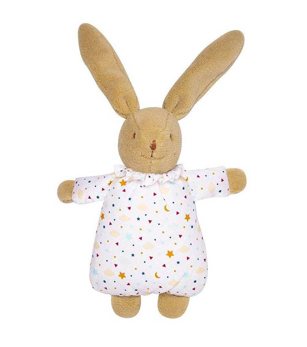 Това плюшено зайче в дрешка, обсипана със звезди, ще спечели сърцето на малчугана за броени секунди. Ще се изгубите в щастливата му усмивка, когато малките пръстчета потънат в този изключително мек плюш.