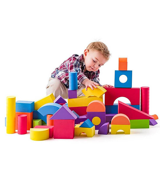 Ефектен мек конструктор с големи блокчета, в различни цветове и формички, които позволяват изграждане на различни по тема проекти.