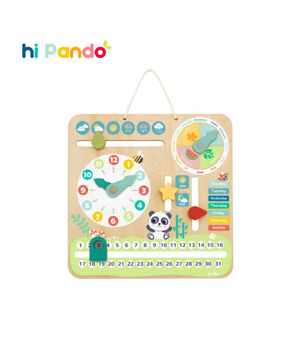 Търсите забавен и ефективен начин детето ви да научи часовника, сезоните и дните от седмицата? Дървеният календар с часовник „hi Pando“ е идеалната образователна играчка за деца над 3 години, която превръща ученето във вълнуваща игра.