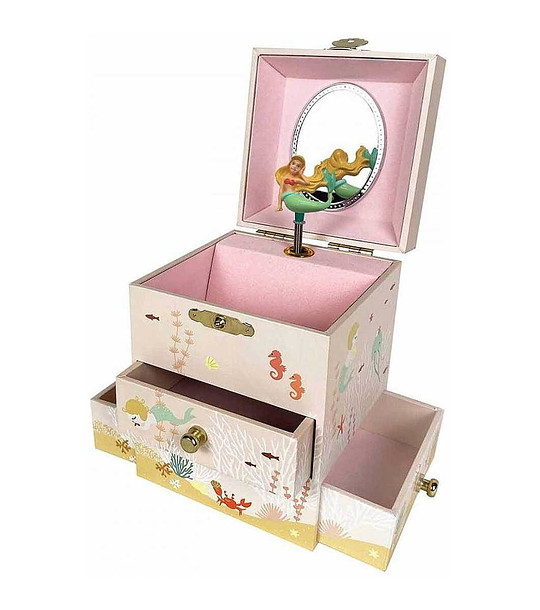 Това е музикална кутия, в която детето ви ще може да прибере своите гривни и ластици. Завъртете манивелата и фигурката оживява като с магия под звуците на музиката. Детето ви ще може да слуша музиката и да се наслаждава на фигурката, която се върти.