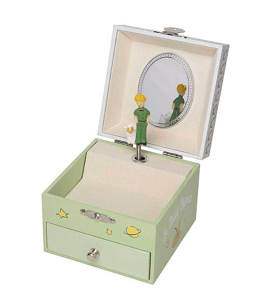 Музикална кутия за бижута, която ще Ви пренесе в приказния свят на приказките. Отворете капака и навийте ключето - ще чуете очарователна мелодия и ще наблюдавате фигурката на малкия принц как се върти в ритъма на музиката.