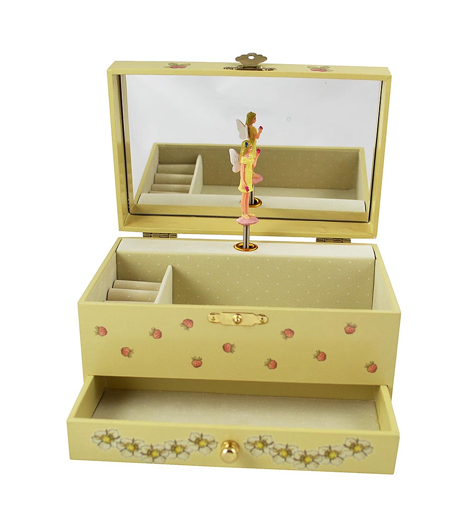 Когато детето отвори капака на музикалната кутията се показва фигурка на фея, която започва да се върти в ритъма на музиката