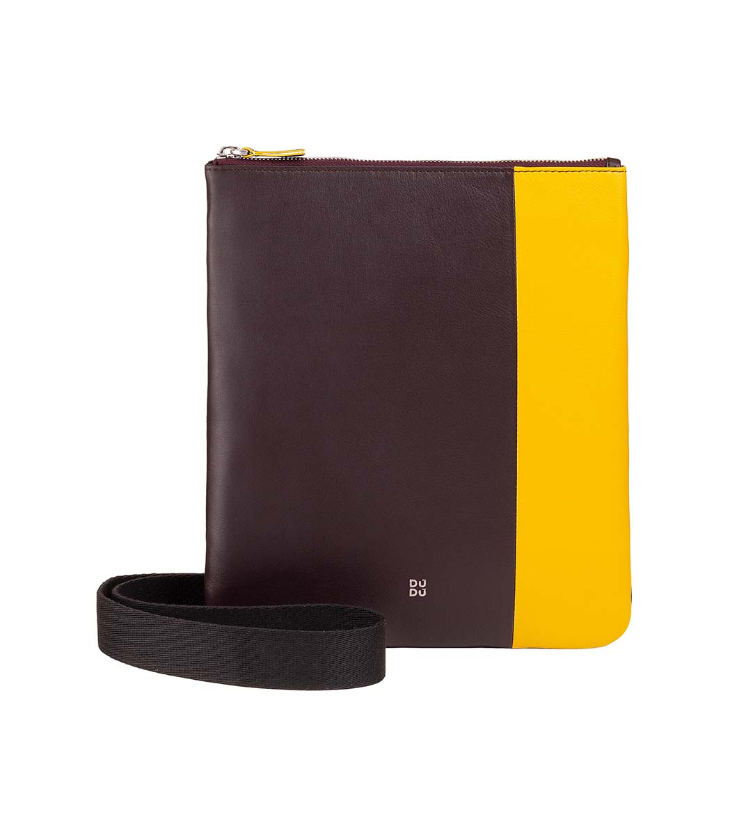 Мъжка кожена чанта в бургунд и жълто Hashima