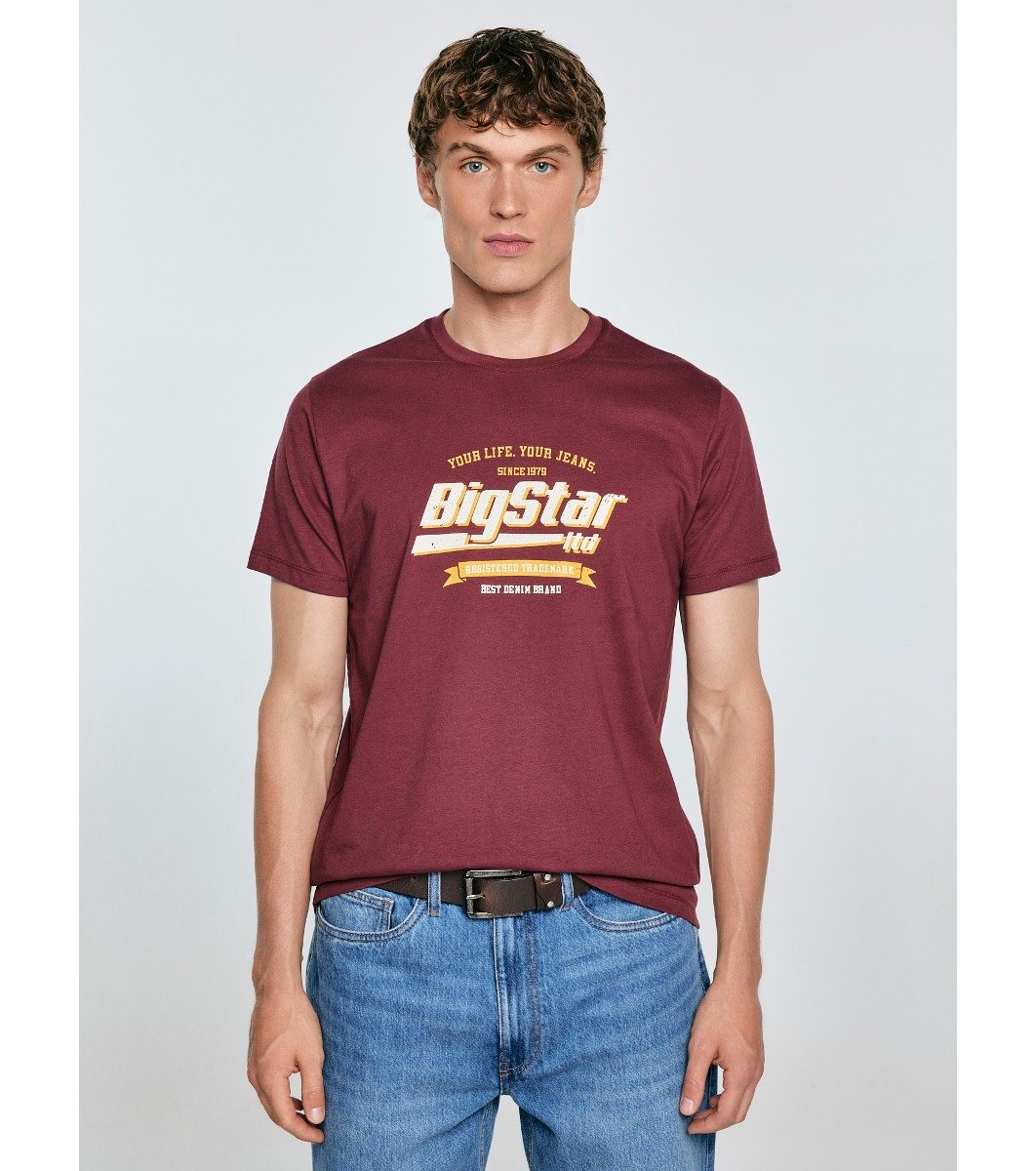 Мъжка памучна тениска в цвят бургунд Briss