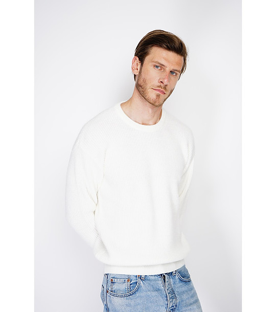 Мъжки пуловер в цвят крем с кашмир