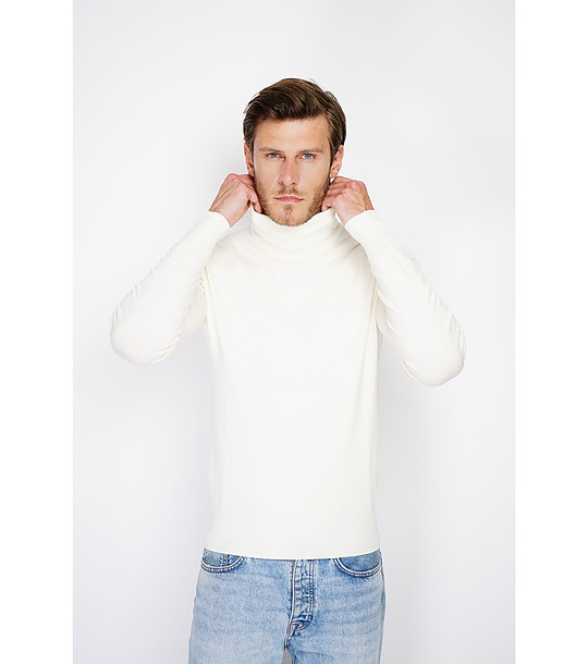 Мъжки пуловер в цвят крем с кашмир
