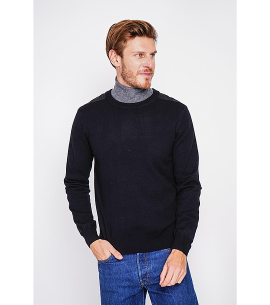 Пуловер от фино плетиво с текстилни платки при раменете и ръкавите