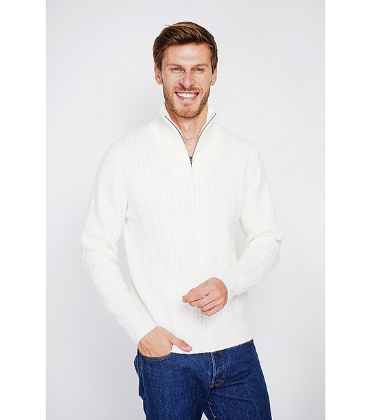 Мъжки пуловер с плетеници в цвят крем