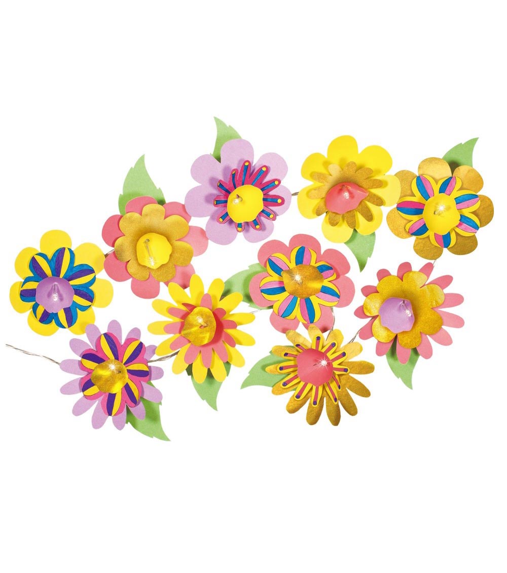 Първо оцветете цветята от хартия като използвате флумастерите, включени в комплекта. Внимателно натиснете оцветените цветя, за да ги отделите от листа. Сглобете цветята като се ръководите от схемата , включена в комплекта.