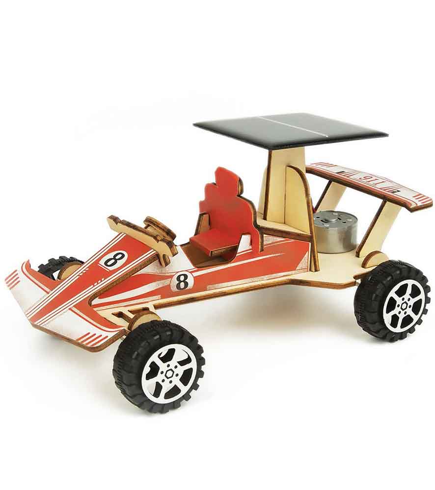 Малкият творец първо ще трябва да я сглоби, а след това да монтира соларната батерия, с която колата ще се задвижва.